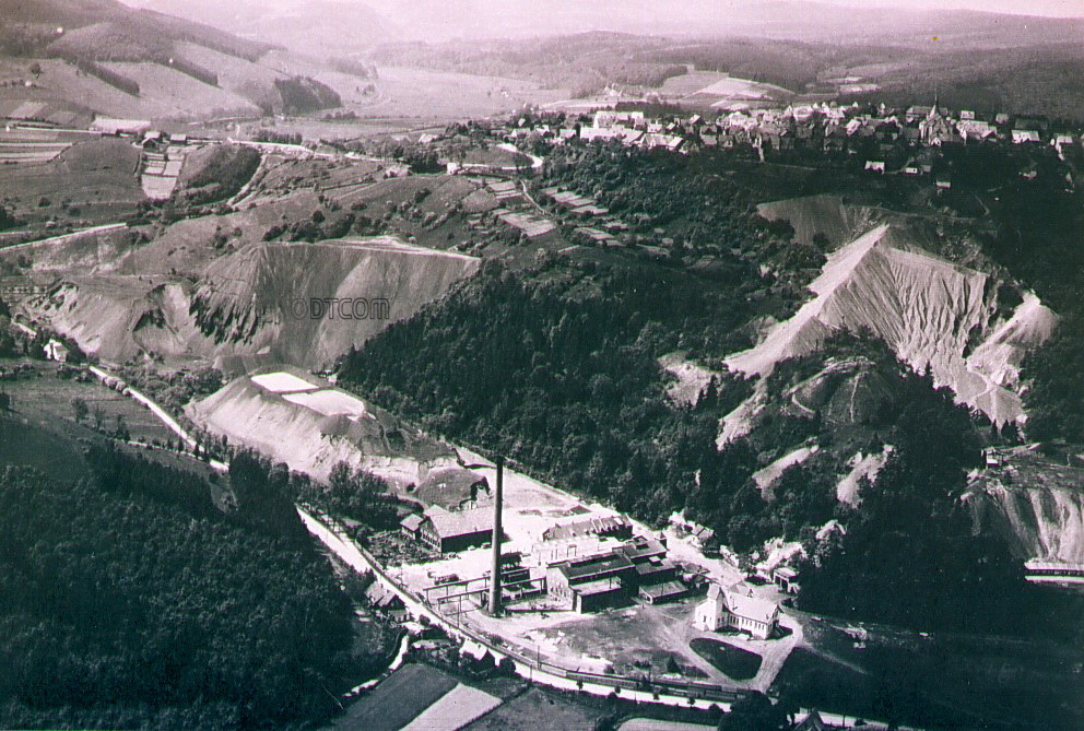 Die ehemalige Stadtberger Hütte in Marsberg war eine der größten Kupfererzlagerstätten Deutschlands. In den Jahren 1937-1945 wurde aus kupferarmen Erzen mit dem Röstlaugenverfahren Kupfer gewonnen. Hierbei wurden bitumenhaltige Roherze mit Steinsalz vermischt, bei 600° C geröstet und die gebildeten Metallsalze anschließend mit der beim Röstprozess entstandenen Salzsäure ausgelaugt. Kieselrot sind die rotbraunen Laugungsrückstände und wurden oberhalb der Hütte in den Tagebau gekippt und zum Versatz in die Stollen eingefahren.